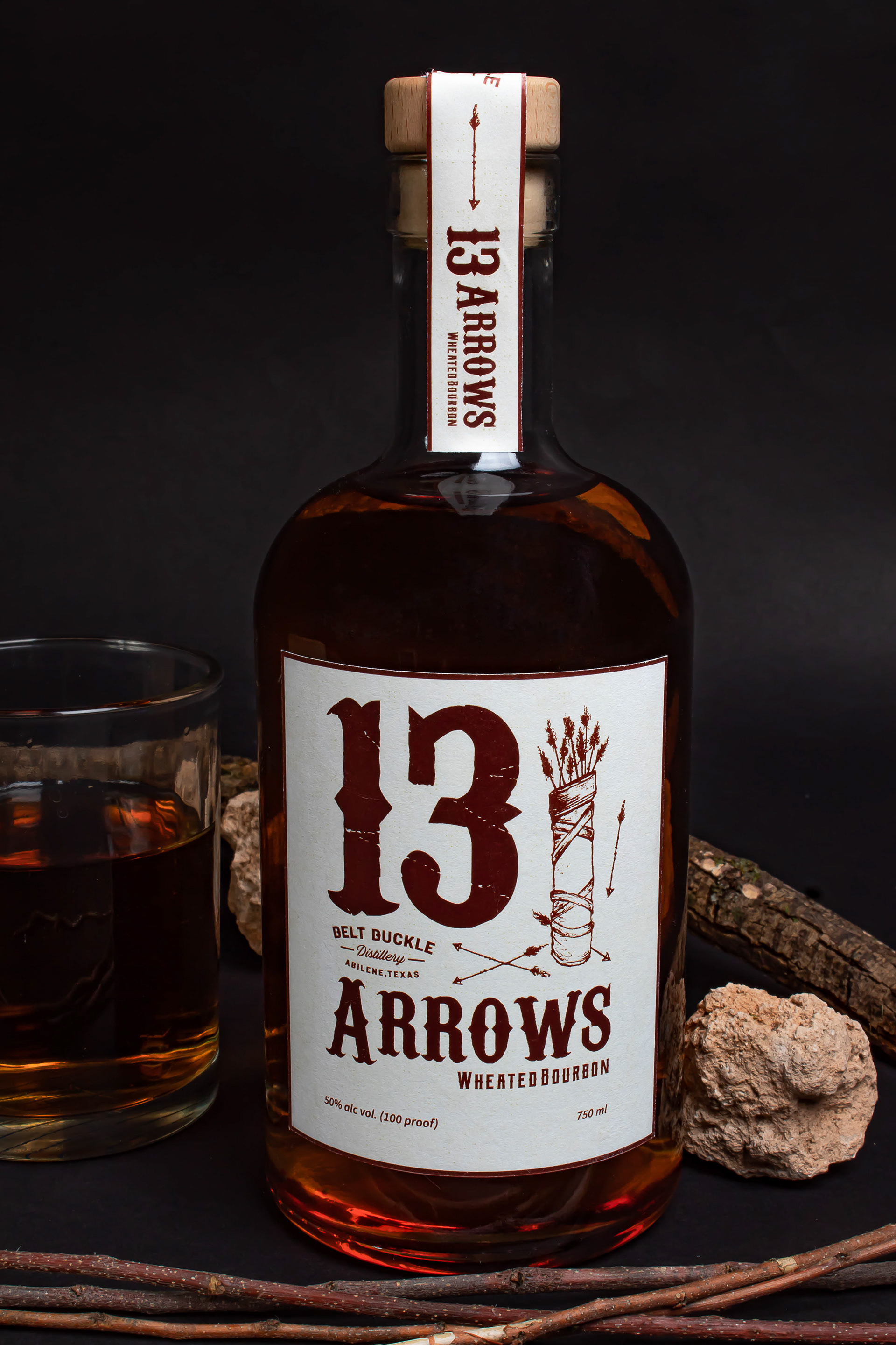 A design for Belt Buckle Distillery "13 Arrows" wheated bourbon.